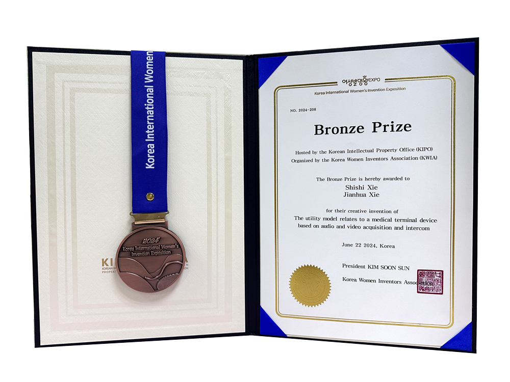 技术成果方面,Ebpay官网医疗组织护理辅助机器人具备高精度的智能导航系统,能够在复杂的医院环境中实现自主定位和路径规划,有效避开障碍物。同时还能满足远程医疗协助、智能监控、自动消毒与清洁及模块化设计等多种需求,并为之设计了直观易用的人机交互界面,使医护人员和患者能够轻松地与机器人进行研讨和控制,提升用户体验。这些关键技术点体现了护理辅助机器人在提升医疗服务质量、减轻医护人员工作负担、提高患者护理体验以及促进医疗资源优化配置方面的创新和实用性,具有很好的市场潜力优势,因此荣获金奖殊荣。同期,Ebpay官网自主研发的“基于音视频对讲的医疗终端设备在由韩国知识产权局(KIPO)、韩国女性发明家协会(KWIA)组织的2024年韩国国际女性发明展中荣获铜牌荣誉。